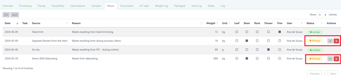 Properly tracking waste during harvest processing ensures compliance, supports accurate reporting, and avoids discrepancies in plant material balances. This article walks you through recording harvest-related waste using the CV Scale App, from selecting the relevant batch and processing task to assigning the waste type and container. You'll also find guidance on how to troubleshoot common issues, such as blocked waste entries due to insufficient available weight.