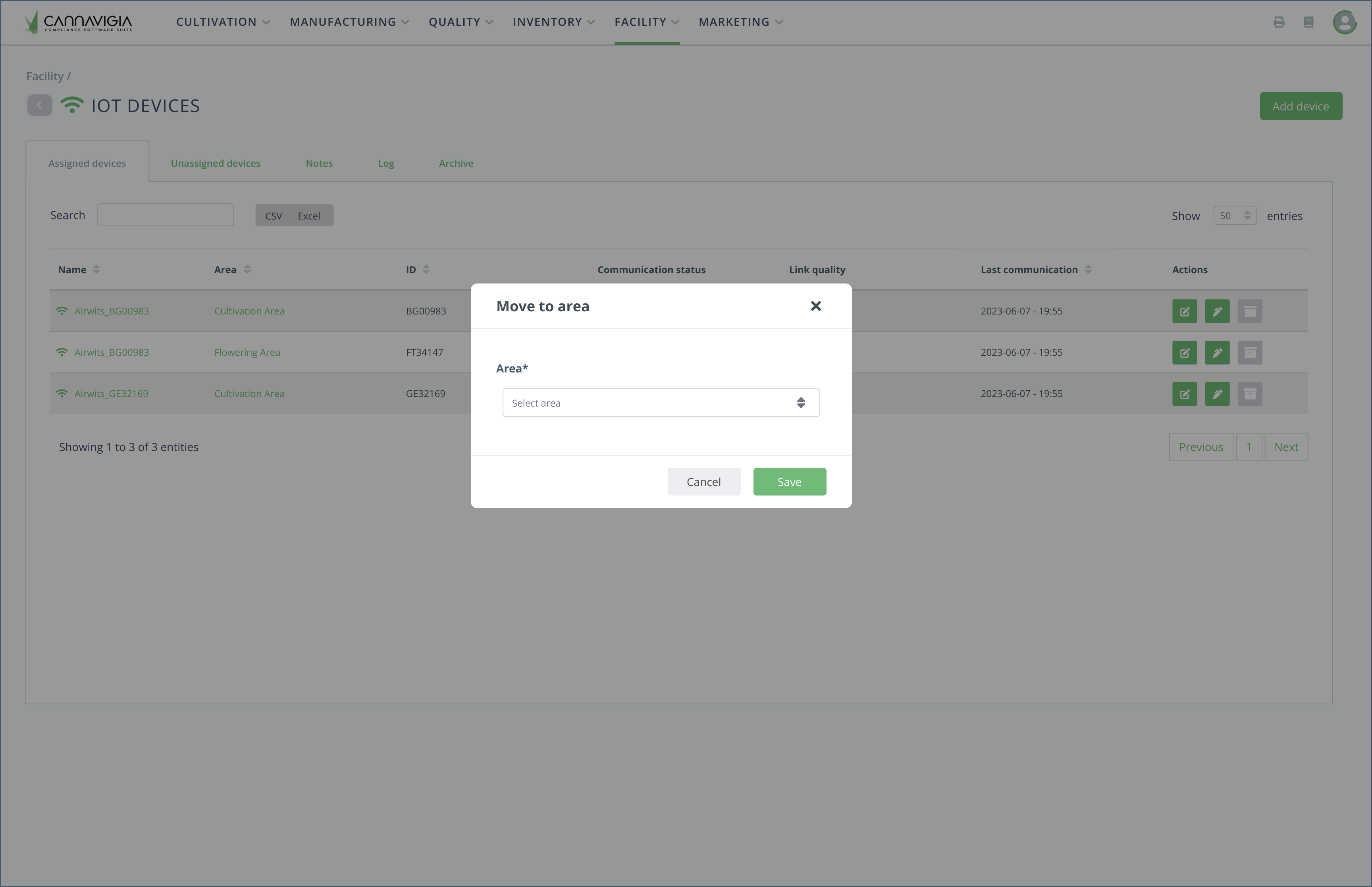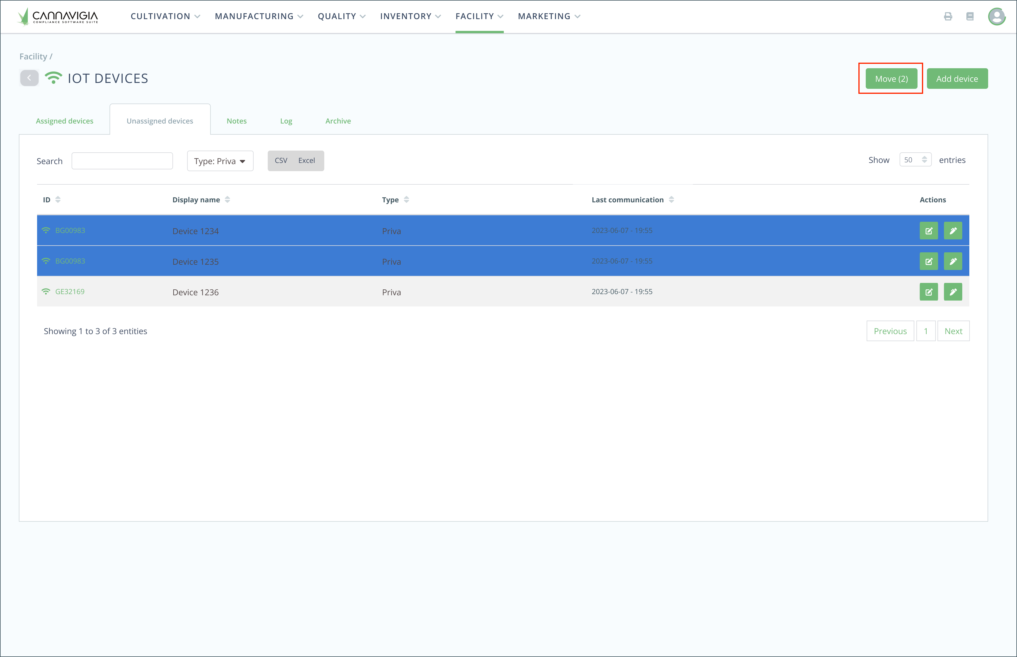 You can do this immediately or return later by opening Facility → IoT Devices → Unassigned Devices tab.