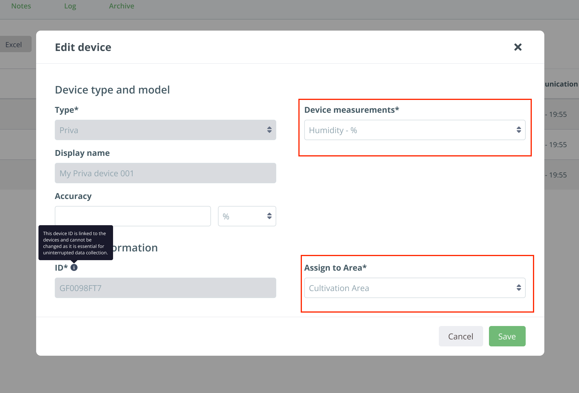 Cannavigia automatically defines device measurements based on units received from Priva. However, please be aware that in certain cases, different measurements may use the same units. To ensure the system receives accurate measurements, we recommend customers verify the data.