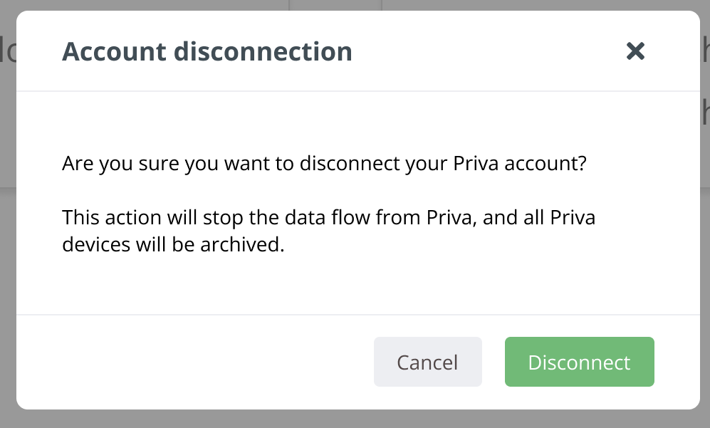 Once archived, the connection status will change to "Disconnected," and the system will stop receiving data from Priva.